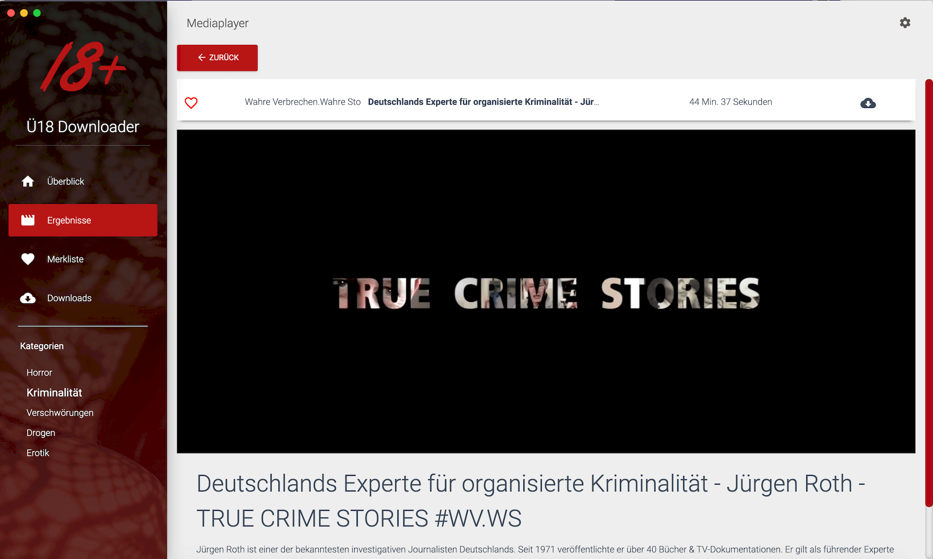 Der Ü18 Downloader bietet dir das Beste aus den Kategorien Horror, Drogen, Verschwörung, Krimi und Erotik.