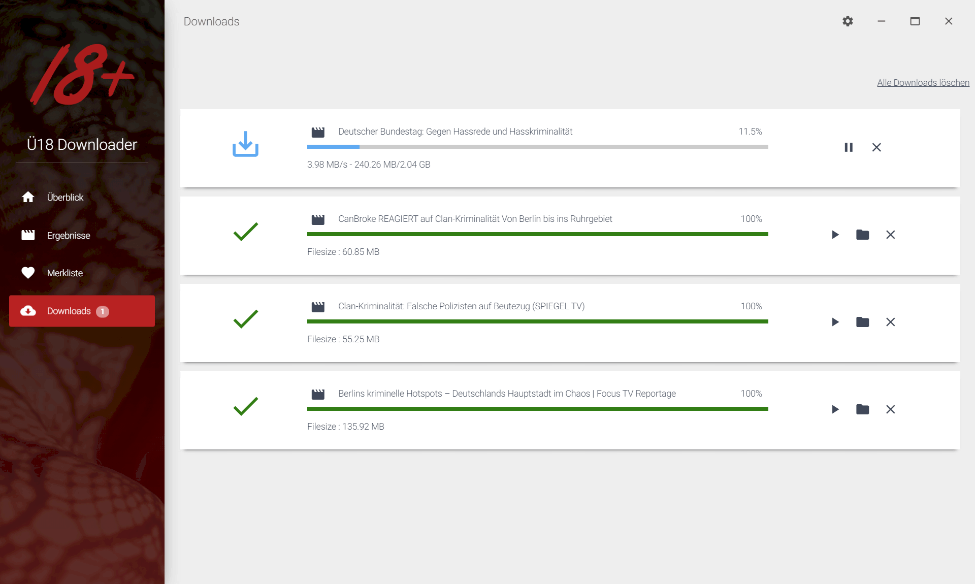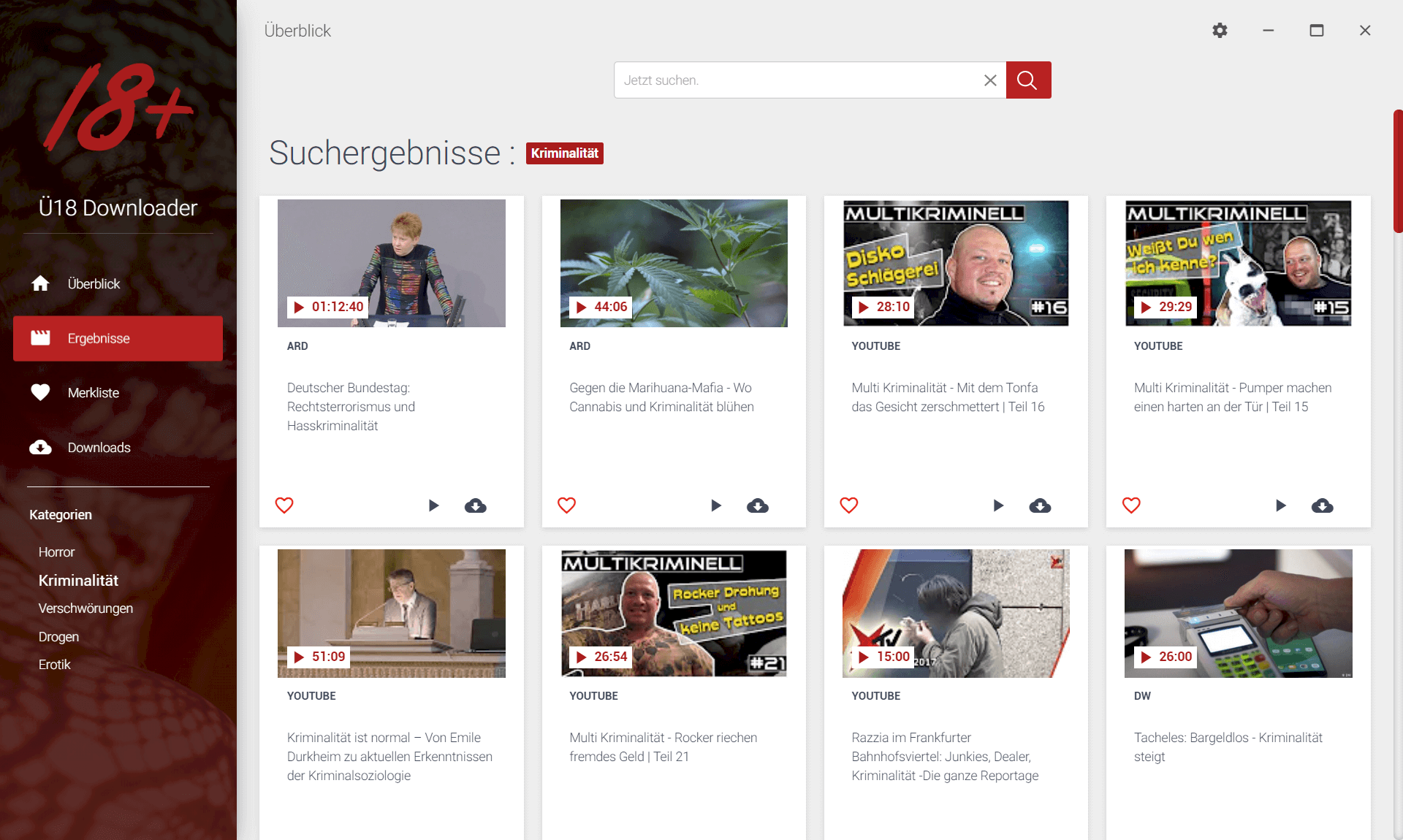 Der Ü18 Downloader durchsucht unterschiedliche Mediatheken damit Du den perfekten Film findest.
